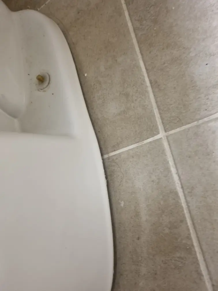 변기 바닥의 앵커볼트를 확인했습니다. 볼트가 녹슬거나 손상되지 않았는지 점검하고, 헐거워진 너트를 렌치로 단단히 조였습니다. 양쪽을 균등하게 조여야 변기가 수평을 유지합니다.